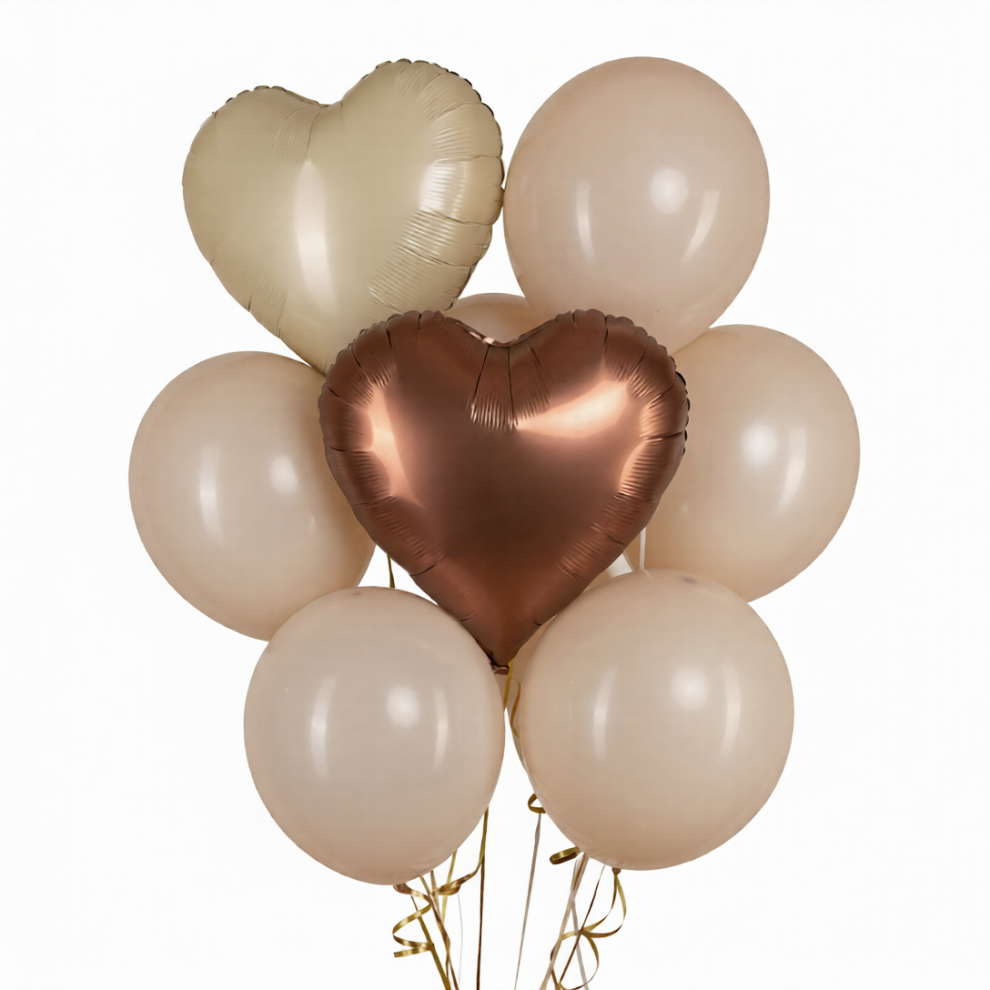 Набор бежевых шаров с сердцами