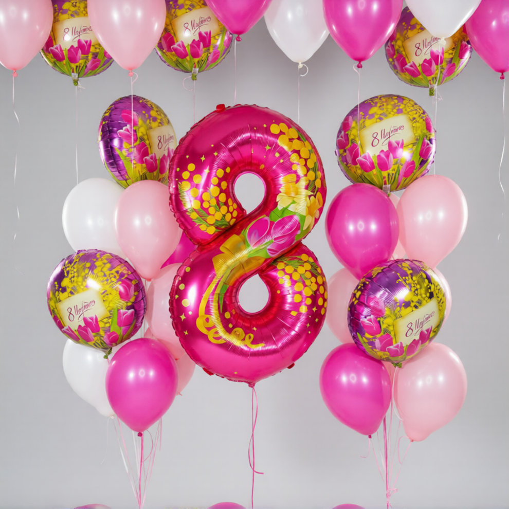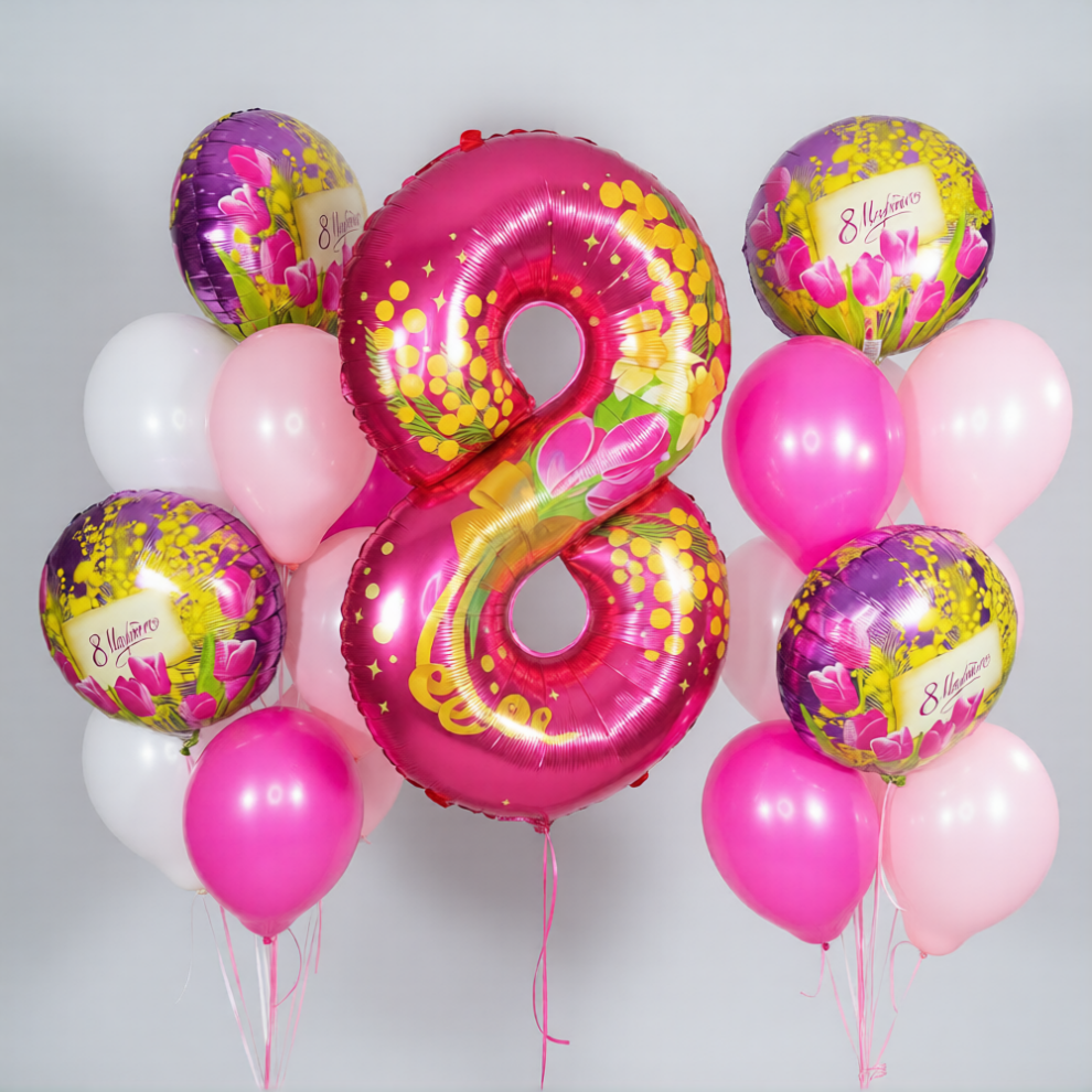 фольгированная цифра 8 с рисунком мимоза *шары в потолок можно заказать дополнительно