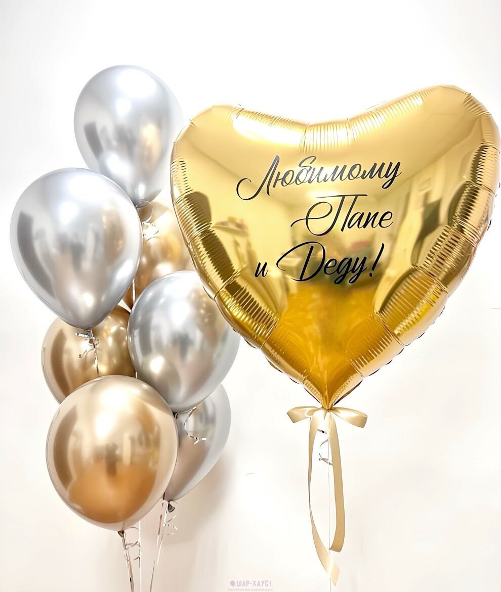Шар сердце гигант с надписью -1 штФонтан из 7 шаров ( хром золото и серебро)-1 шт