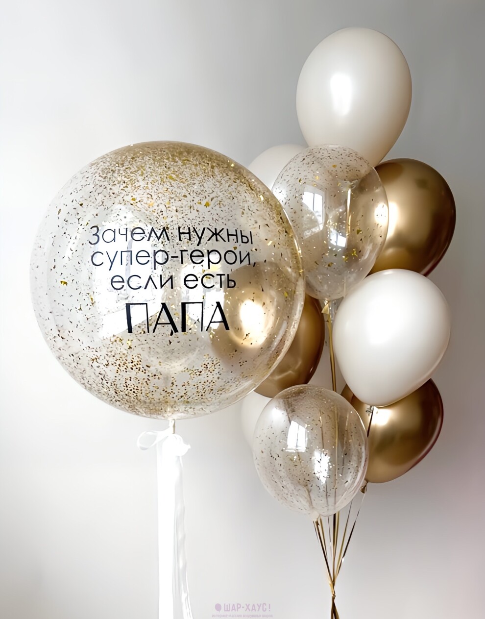Шар сфера с конфетти и надписью -1 штНадпись: Зачем нужны супер-герои, если есть ПАПАФонтан из 10 шаров -1 шт