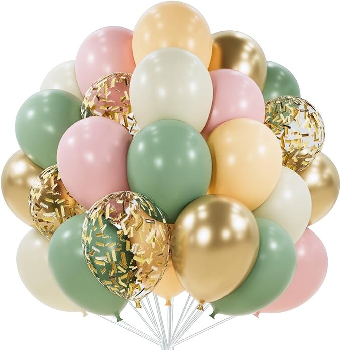 Набор шаров : Розовые, персиковые, песочные, оливковый, золото хром, шары с конфетти