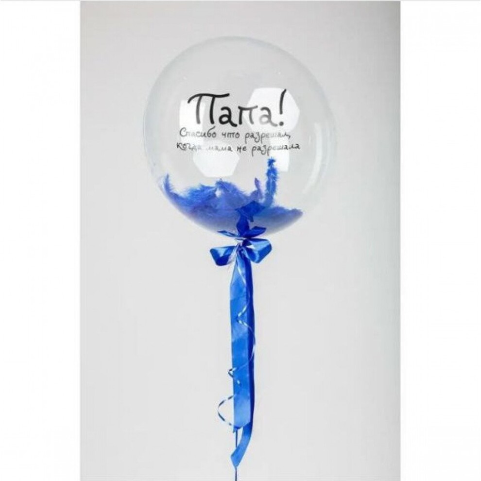 Шар гигант сфера с перьями синего цвета + любая ваша надписьЛюблю тебя, пап!Самому лучшему!Ты мой геройЛюбимому мужу