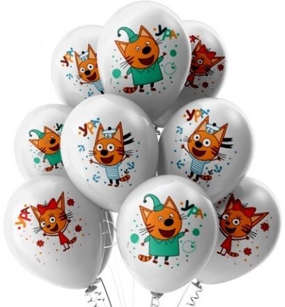 Шары белые с цветными рисунками Карамелька, Компот, Коржик, Лапочка, Сажик, горчица